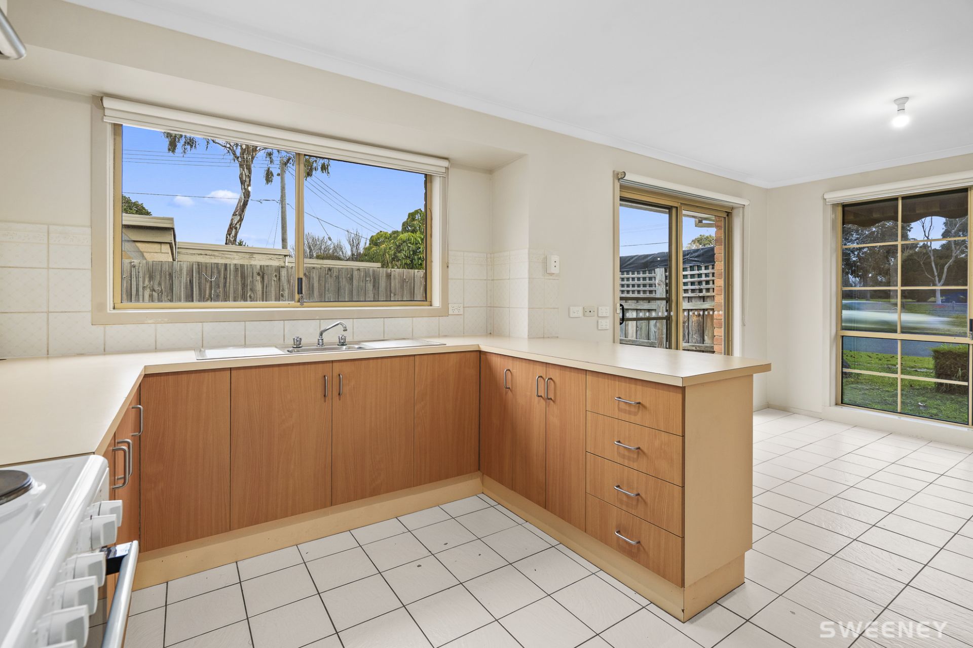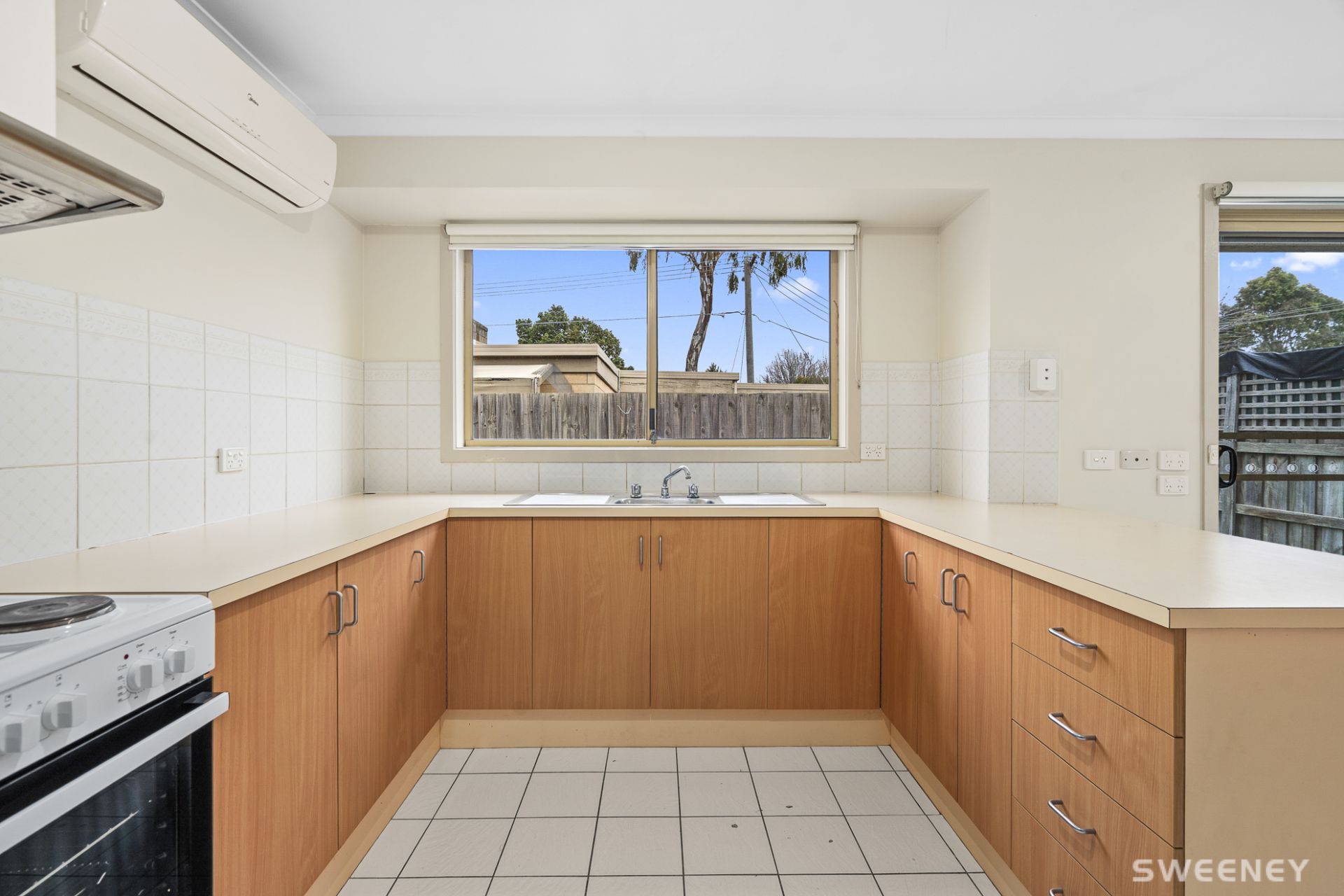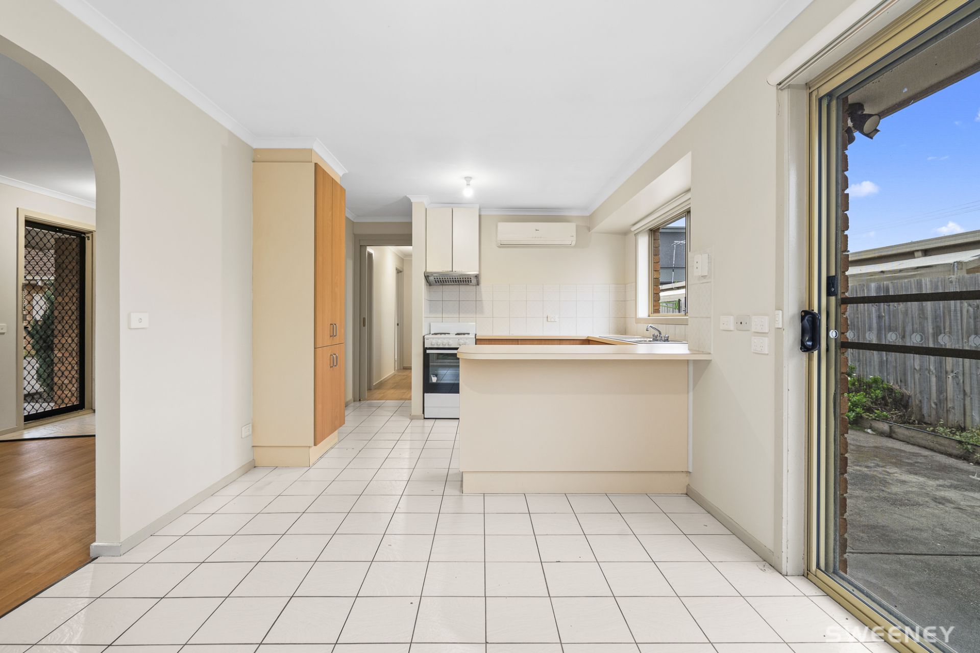 • Open plan kitchen and dining with a split system, leading onto a large rear sunny courtyard.