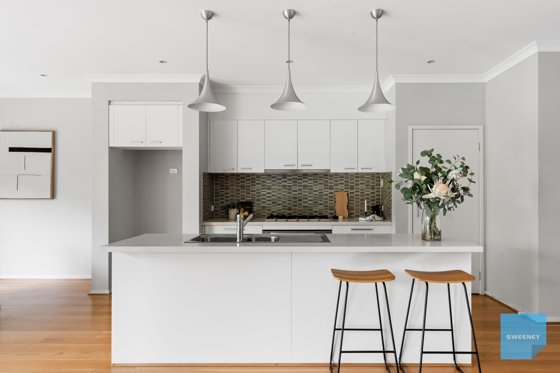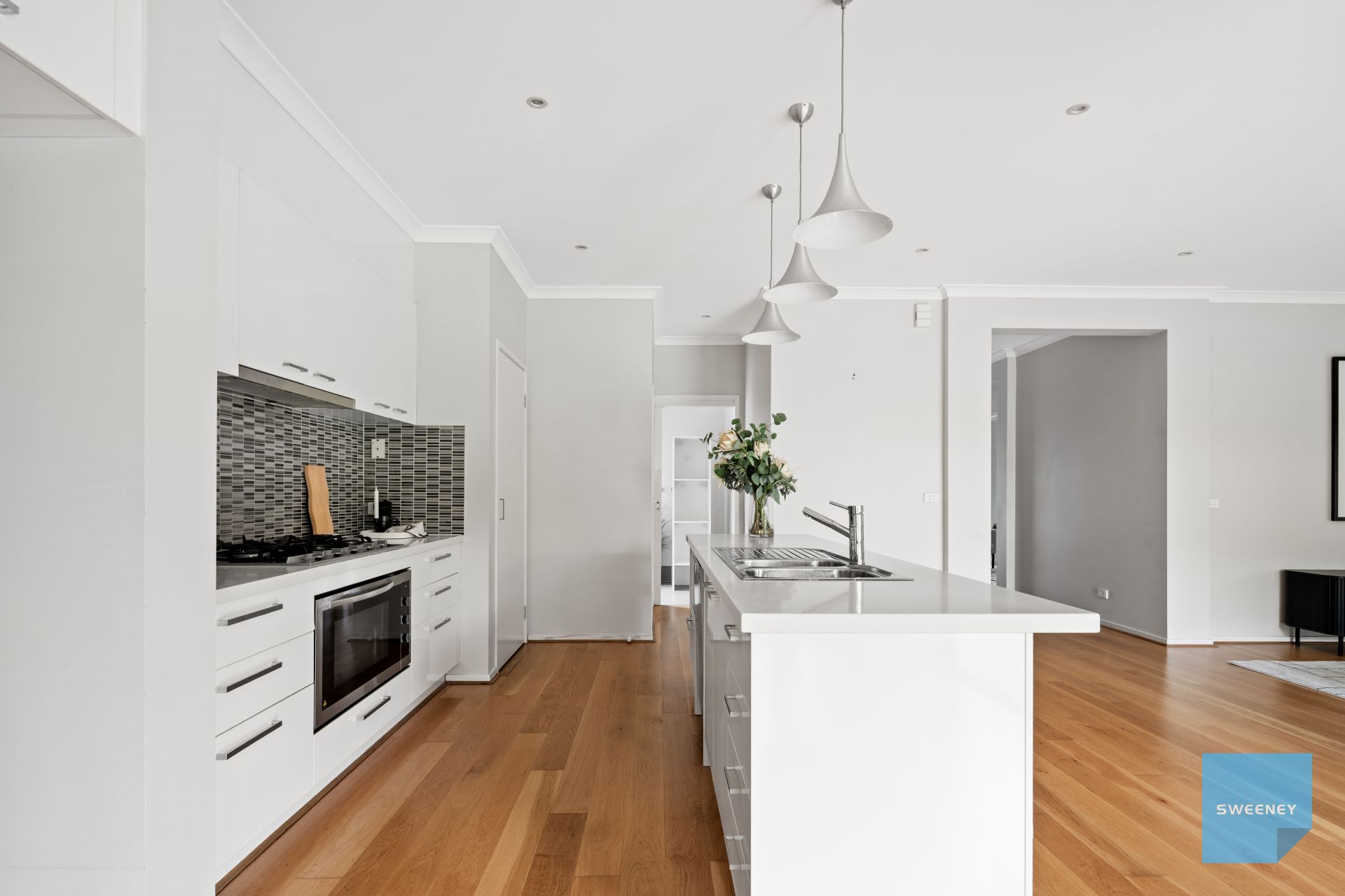 * Modern hostess kitchen is a sleek, stylish centrepiece of the home, thoughtfully designed for both everyday living and entertaining. It showcases premium 900mm stainless steel appliances, Caesarstone benchtops, a striking tiled splashback, elegant pendant lighting, and a built-in dishwasher. With an abundance of bench space and storage, this kitchen effortlessly combines practicality with contemporary flair