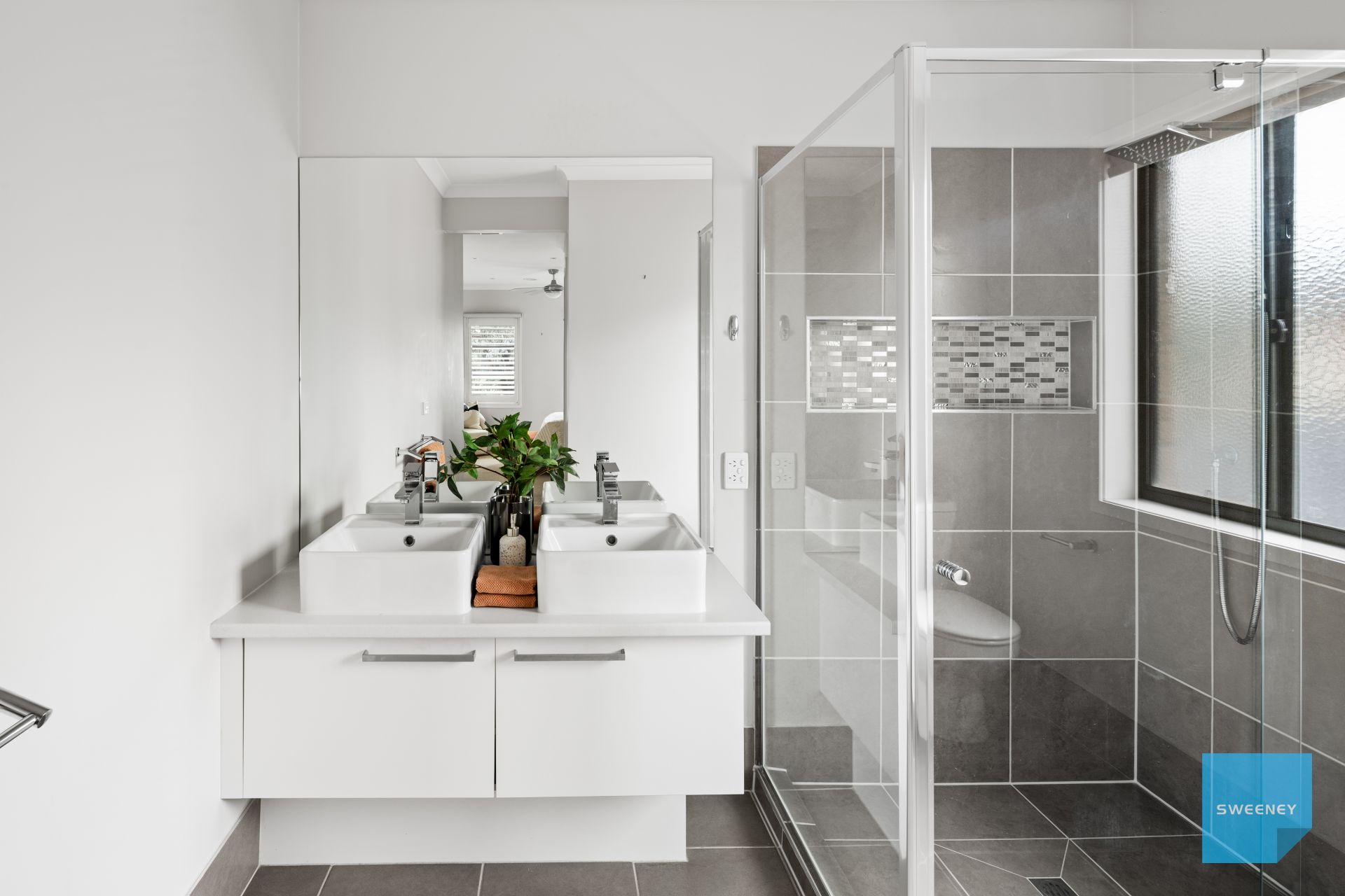 * Oversized master suite is a true private retreat, featuring a spacious walk-in robe, a ceiling fan for year-round comfort, and a beautifully appointed ensuite that exudes luxury - complete with a sleek double vanity, an oversized shower, and a built-in niche for added convenience and style