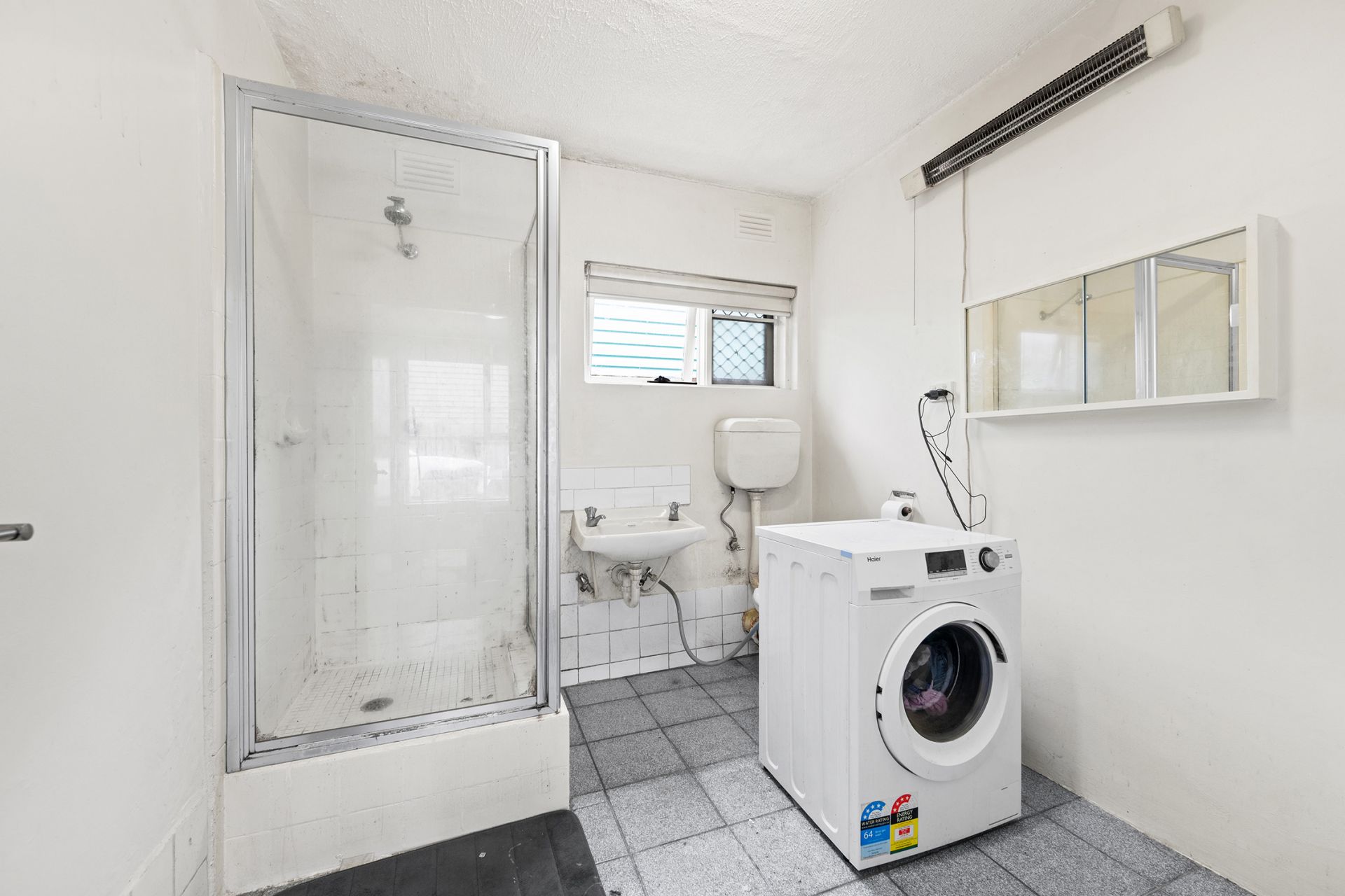 - The bathroom is spacious.